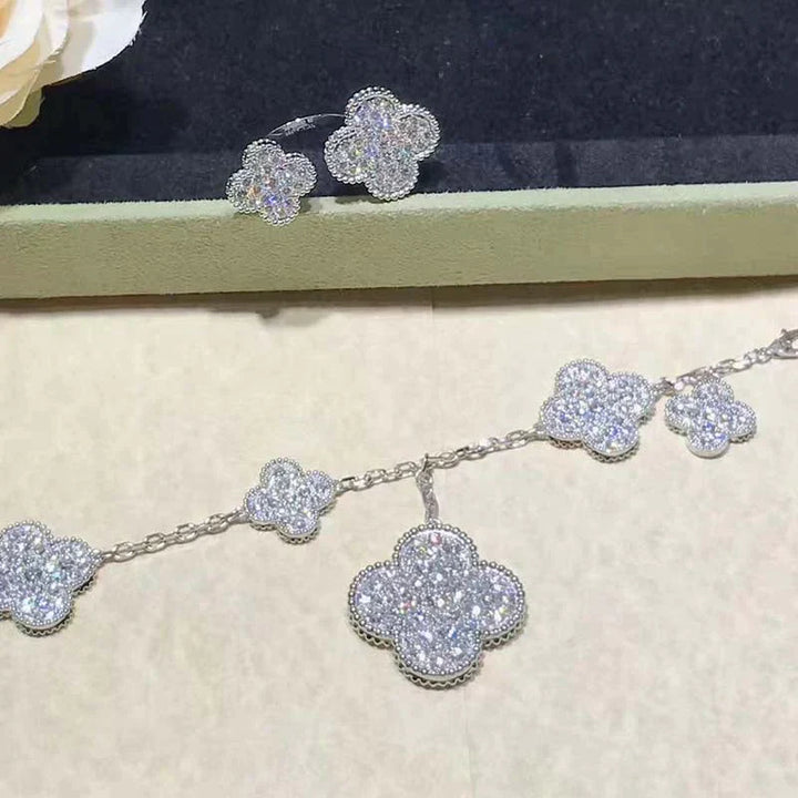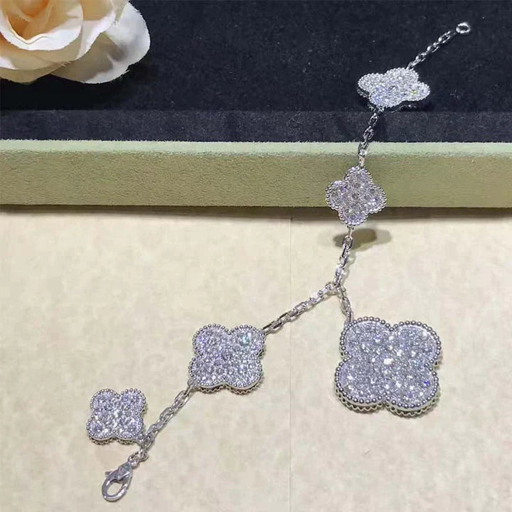 CLOVER 6 MOTIFS SILVER DIAMOND BRACELET