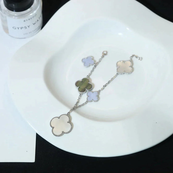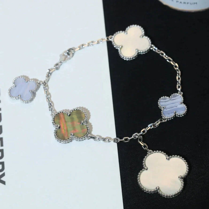 CLOVER BRACELET 5 MOTIFS MOP CHALCEDONY SILVER