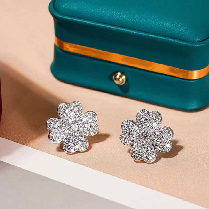 Add some luck to your wardrobe with our stunning Clover Earrings. Crafted from silver and adorned with sparkling diamonds. these earrings will elevate any outfit. Perfect for both casual and formal occasions. these earrings will be a stylish addition to your jewelry collection.