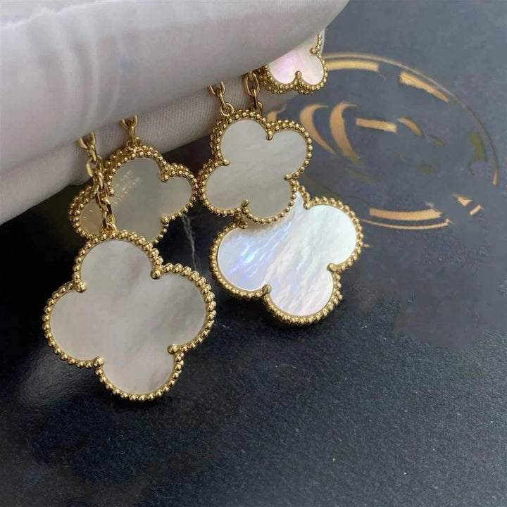 CLOVER EARRINGS WHITE MOP 4 MOTIFS GOLD