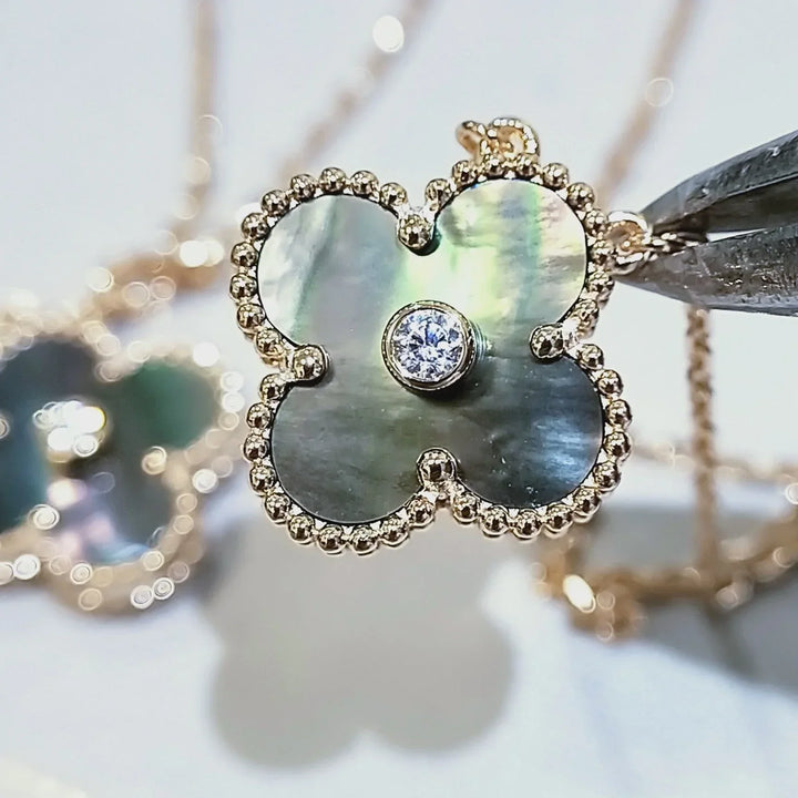 CLOVER GOLD DARK MOP CLOVER NECKLACE