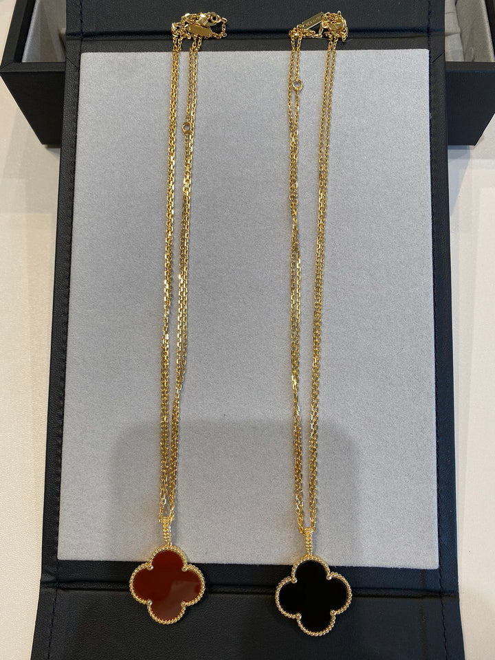 This stunning CLOVER NECKLACE GOLD CARNELIAN features a delicate clover-shaped pendant crafted from high-quality gold and adorned with a vibrant carnelian gemstone. The perfect accessory to add a touch of elegance and natural beauty to any outfit. Upgrade your jewelry collection with this timeless piece.