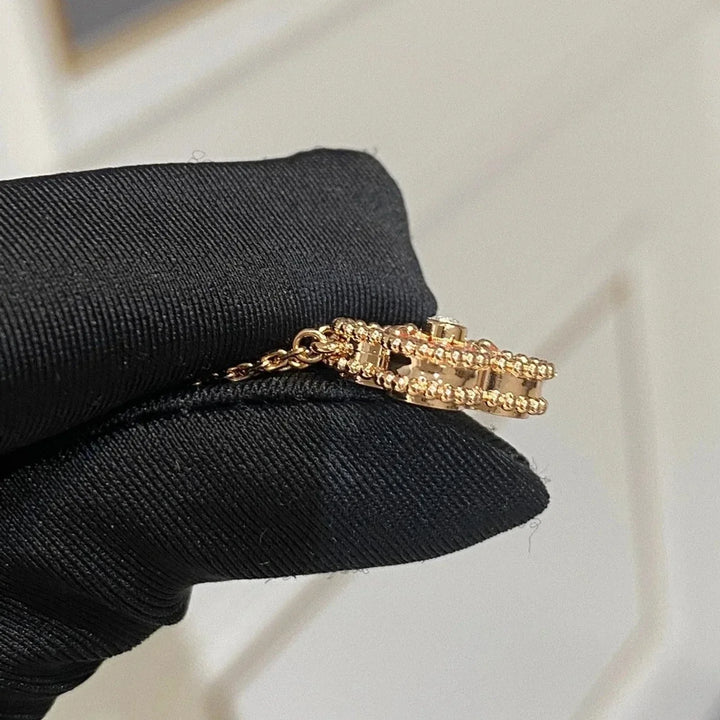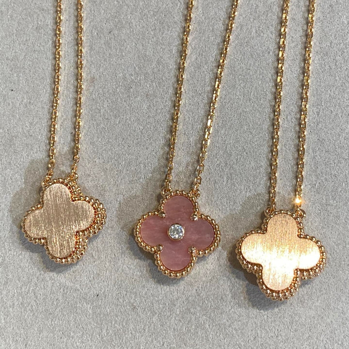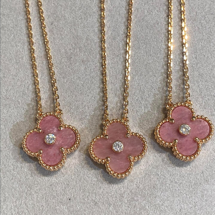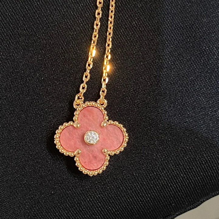 CLOVER RHODONITE 1 DIAMOND PINK GOLD NECKLACE