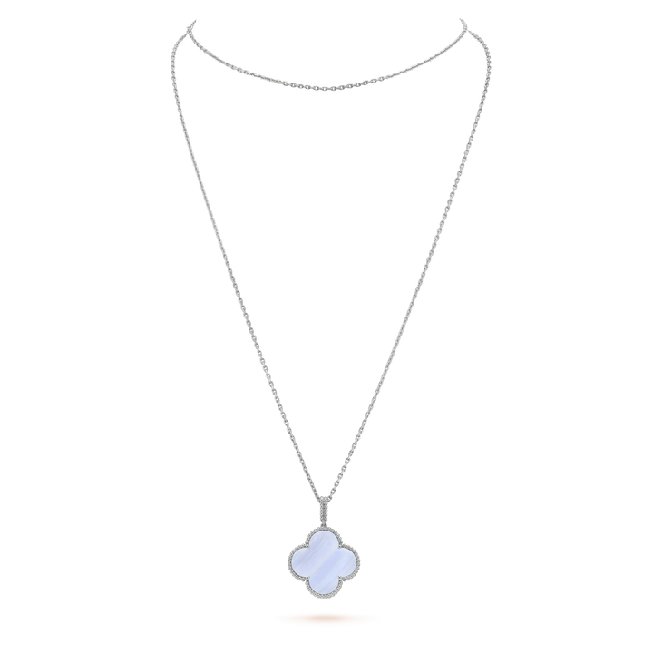 CLOVER SILVER CHALCEDONY BIG CLOVER NECKLACE