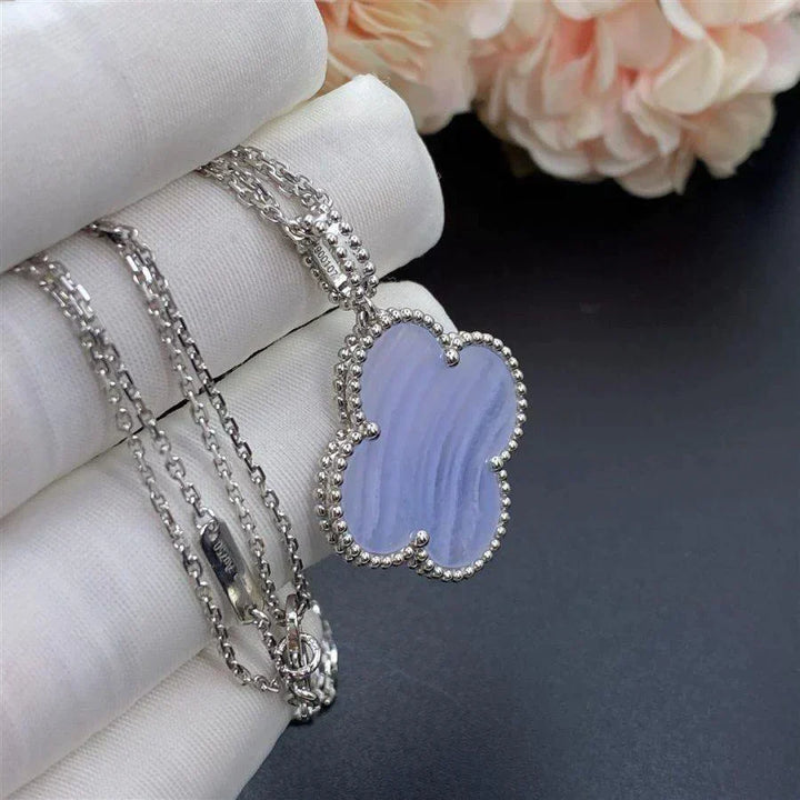 Expertly crafted and designed. our CLOVER SILVER CHALCEDONY BIG CLOVER NECKLACE features a beautiful silver clover pendant adorned with a chalcedony gemstone. Perfect for adding a touch of elegance and sophistication to any outfit. Handmade with quality materials for a lasting. timeless piece.