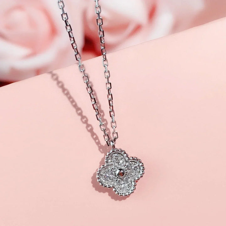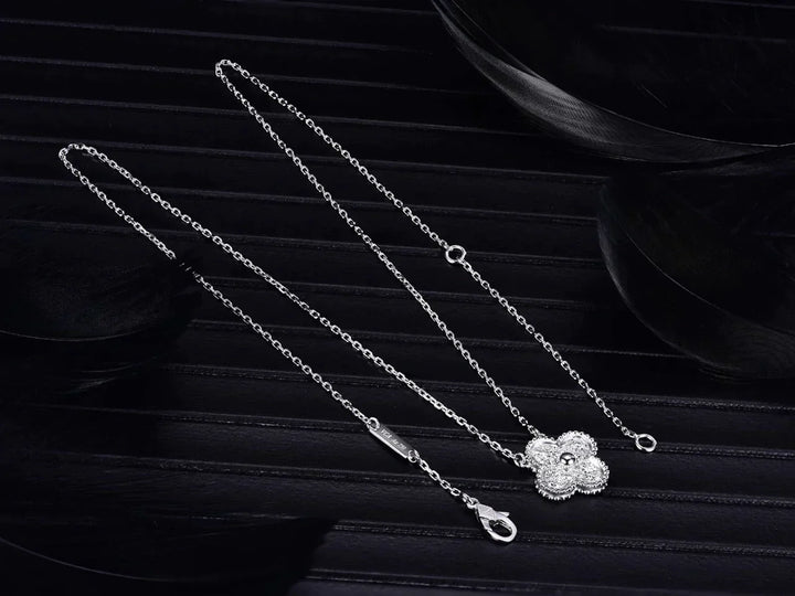 Crafted with delicate silver and sparkling diamonds. our Clover Silver Diamond Necklace exudes elegance and sophistication. With intricate clover detailing. this necklace is a versatile piece that can be dressed up or down. Perfect for adding a touch of luxury to any outfit and making a statement with its unique design.