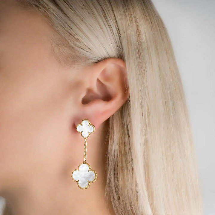 CLOVER WHITE MOP EARRINGS 2 MOTIFS