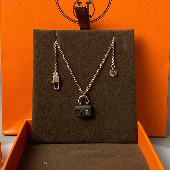 Expertly handcrafted. the CONSTANCE BLACK PENDANT PINK GOLD NECKLACE is a stunning addition to any jewelry collection. Made from high-quality materials. this necklace features a sleek black pendant on a delicate pink gold chain. Elevate your style and make a statement with this elegant and timeless piece.