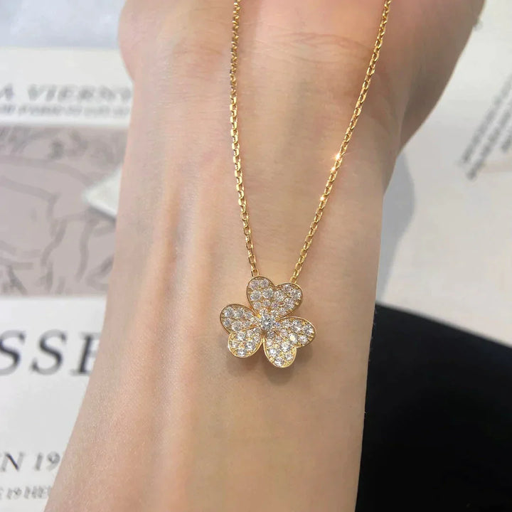 This elegant FLOWER DIAMOND NECKLACE features a delicate flower design with sparkling diamonds. The perfect statement piece for any occasion. this necklace adds a touch of sophistication and style to any outfit. Crafted with expert precision. this necklace is sure to become a beloved piece in your jewelry collection.