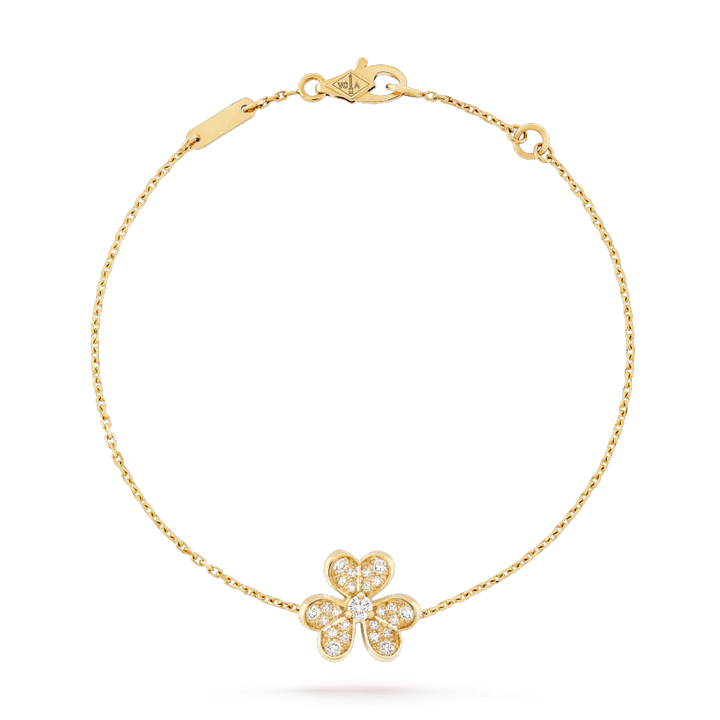 Crafted with elegance and style in mind. the Frivole Gold Flower Diamond Bracelet is a stunning addition to any jewelry collection. Made with exquisite gold and adorned with sparkling diamonds. this bracelet is the perfect choice for those who appreciate the finer things in life. Elevate your look and make a statement with this luxurious piece.