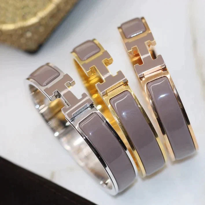 Introducing the H BRACELET 12MM BROWN - a sleek and stylish bracelet that adds a touch of sophistication to any outfit. Crafted with a 12mm width. this bracelet is the perfect combination of luxury and practicality. The deep brown color adds a touch of warmth. while the H design showcases your unique sense of style. Elevate your wardrobe with this must-have accessory.