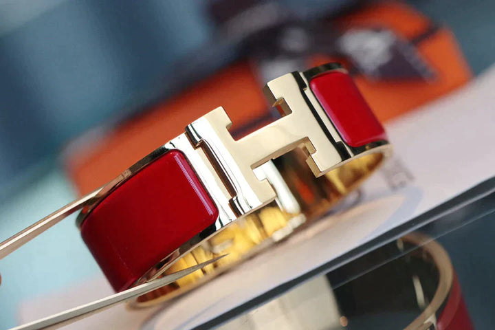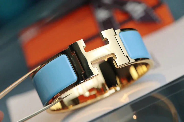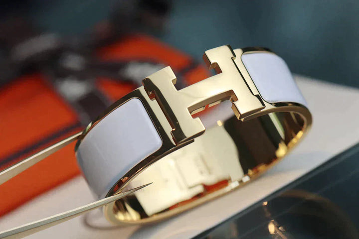 This H BRACELET in 18MM GOLD is a stunning addition to any jewelry collection. The sleek. unique design is expertly crafted and exudes elegance and sophistication. Made with high-quality materials. this bracelet is sure to make a statement and elevate any outfit. Perfect for both formal occasions and everyday wear.