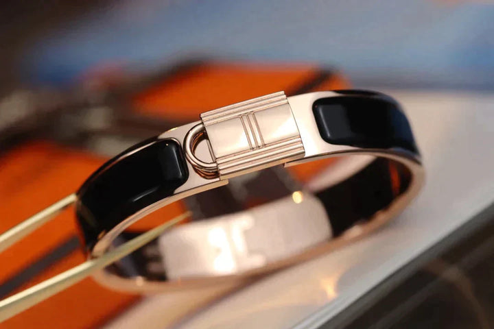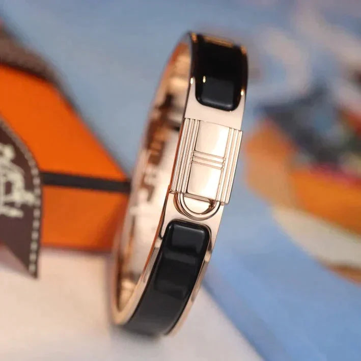 Upgrade your style with the H LOCK BLACK PINK GOLD BRACELET 12MM. Featuring a unique H-shaped lock. this bracelet is both fashionable and secure. Made with high-quality materials in a sleek black. pink. and gold design. this accessory is perfect for completing any look.