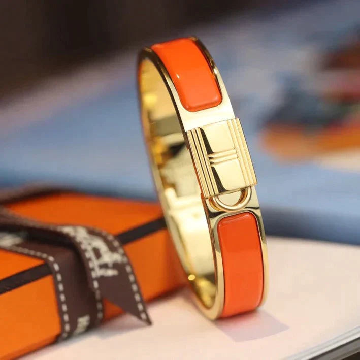 Elevate your style with our H LOCK ORANGE GOLD BRACELET 12MM. Made with high quality materials. this exquisite piece adds a touch of sophistication and luxury to any outfit. With its statement H lock and bold orange gold color. this bracelet is perfect for those looking for a unique and fashionable accessory.