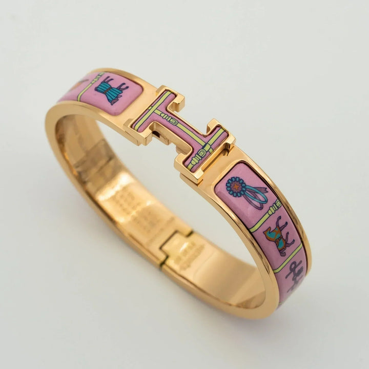 As an expert in the luxury jewelry industry. we are proud to offer our H Pink Gold Bracelet in stunning pink ceramic. This elegant and unique piece showcases the perfect blend of traditional gold with modern ceramic. creating a one-of-a-kind statement accessory. Elevate any outfit with this impeccable design.