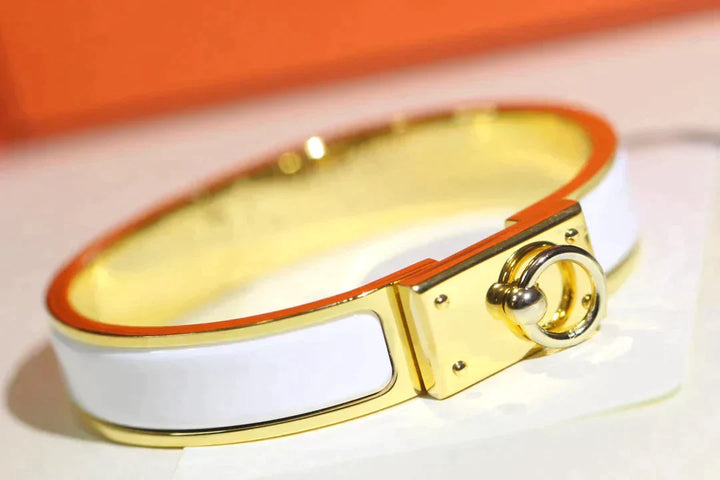 Secure your style game with the H Ring Lock Bracelet! Featuring a sleek 12mm white band. this bracelet is perfect for adding a touch of edge to any outfit. No need to worry about losing it with the secure H ring lock design. Make a statement with this unique accessory.