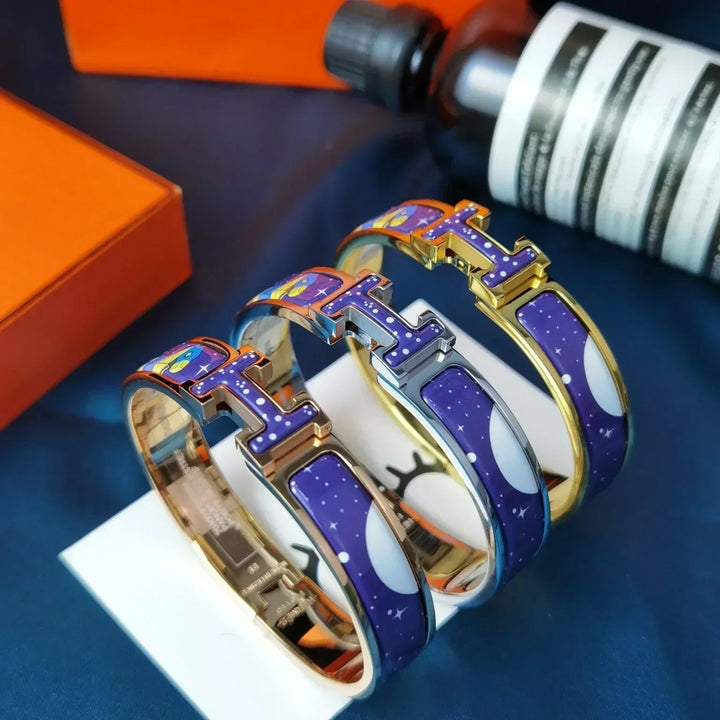 Add some celestial charm to your look with our H STAR AND MOON BRACELET! This 12mm bracelet features delicate star and moon charms. perfect for a playful and unique style. Shine bright like the night sky with this must-have accessory!