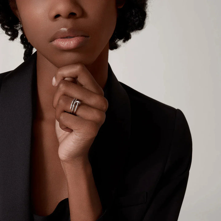 Elevate your style with the exclusive JUSTE RING. Crafted from shimmering silver. the double row design adds a touch of sophistication. With a sleek 1.8mm band. this ring is a must-have for any fashion-forward individual. Channel your inner luxury with this elegant and timeless piece.