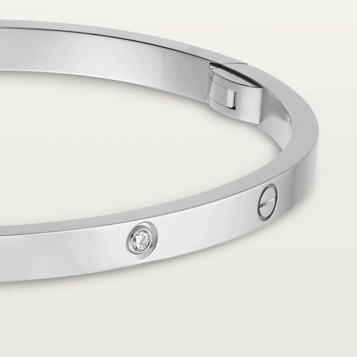 Experience true love with our exclusive LOVE BRACELET 3.65MM adorned with 6 beautiful diamonds. The timeless design and exquisite craftsmanship make it a symbol of elegance and luxury. Perfect for any occasion. this bracelet is a statement piece that will elevate any outfit. Cherish your love with this stunning bracelet.