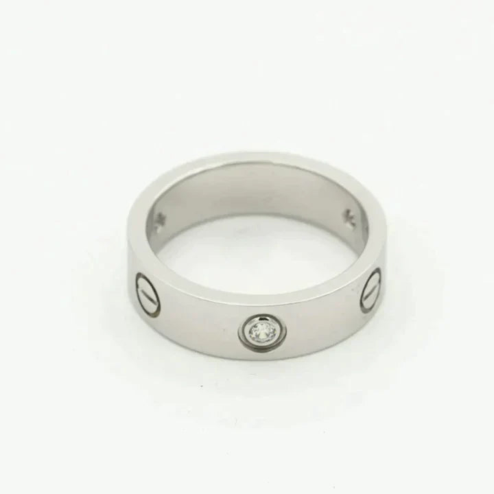 This LOVE RING is crafted with 5.5MM width and features 3 diamonds set in sleek silver. Perfect for adding a touch of elegant sparkle to any ensemble. Made with expert craftsmanship and timeless design. this ring is a symbol of love and commitment.