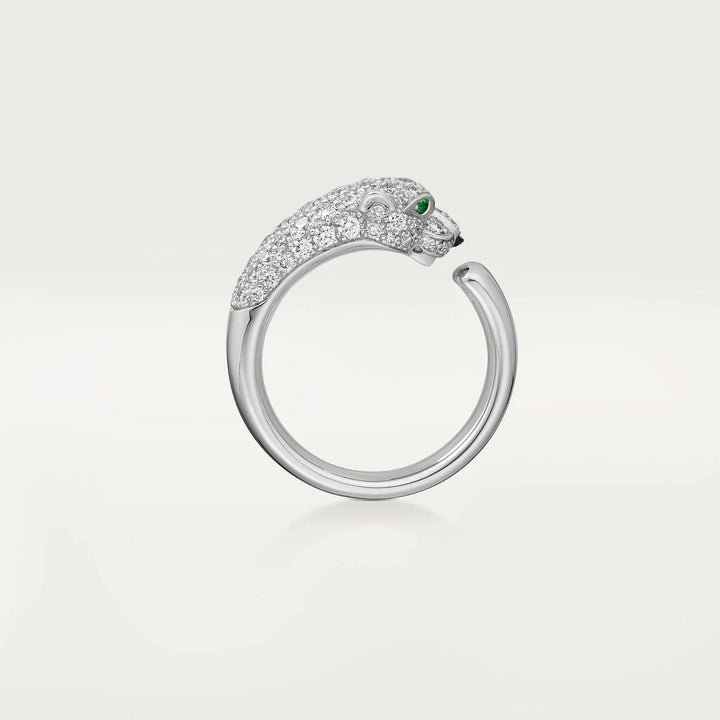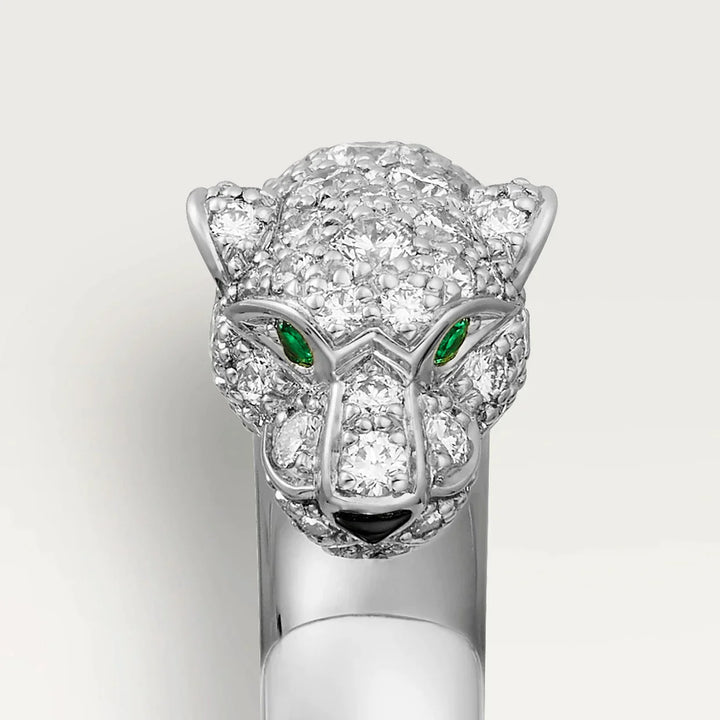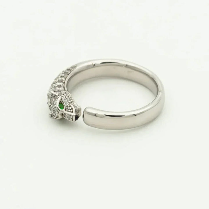 Expertly crafted. the PANTHERE RING DIAMOND 7.3MM features a stunning 7.3mm diamond. exuding timeless elegance and grace. The intricate design showcases precision and artistry. making it the perfect luxurious accessory for any occasion. Elevate your style with this exquisite piece of fine jewelry.